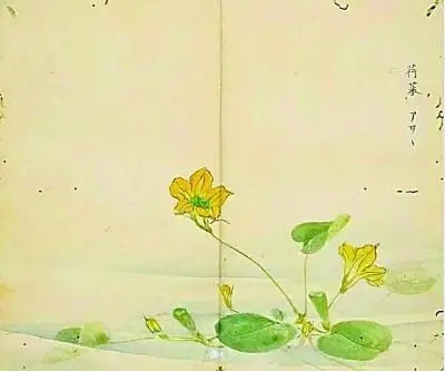 《毛传》说:“荇,接余也。”《尔雅·释草》云:“莕,接余,其叶‘苻’。”郭璞说:“长短随水深浅,江东食之,亦呼为‘莕’。”这里的荇菜,也叫“莕”或者“接余”,是种可食用的水草。它是多年生水生草本植物,节下生根。圆形或椭圆形的叶片漂浮在水上,很像睡莲,还有小黄花。它不仅受古人青睐,今天也被大量种植,既能观赏,又能食用,还能入药。《唐本草》说它“主消渴,去热淋,利小便”,《本草纲目》说它“捣敷诸肿毒,火丹游肿”。