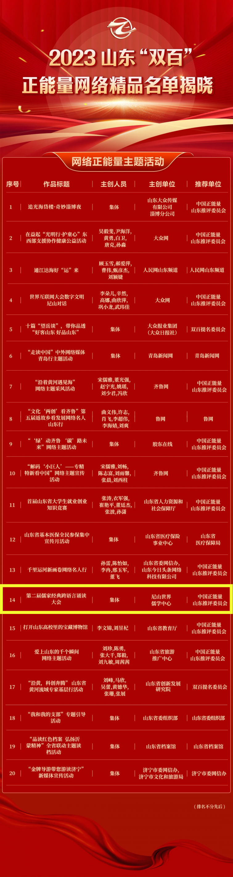喜报 | 第二届儒家经典跨语言诵读大会入选2023山东“双百”正能量网络精品!