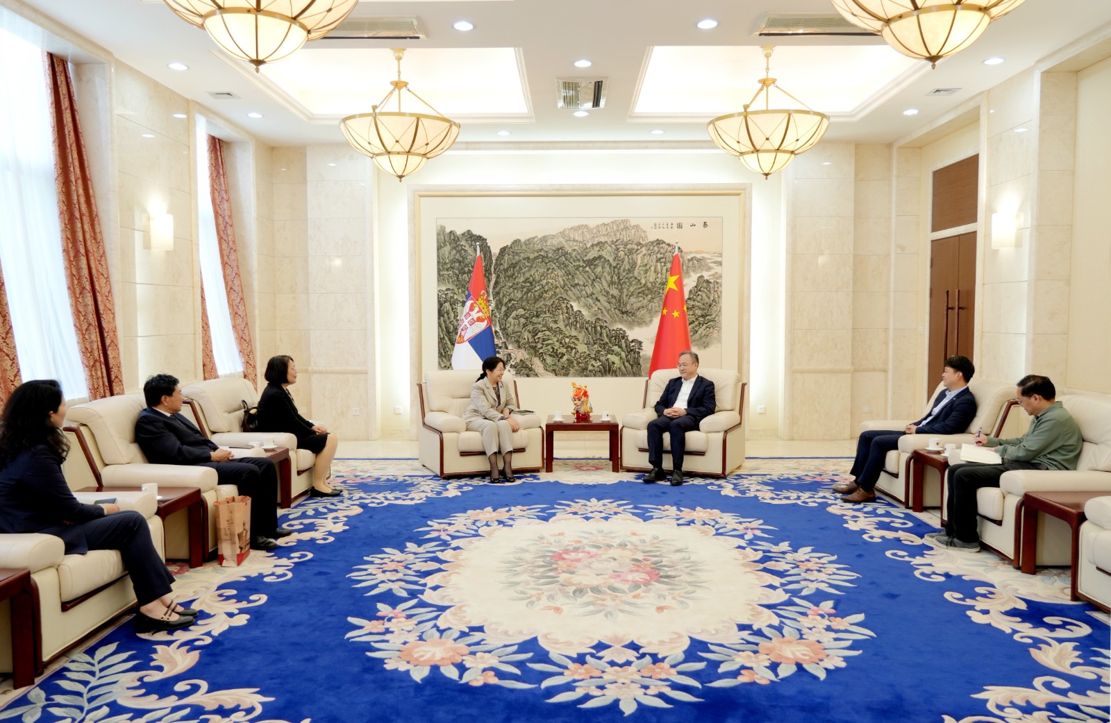 李明对国承彦一行表示热烈欢迎。他说,习近平主席对塞尔维亚国事访问成果丰硕,亮点纷呈,意义重大,影响深远。两国元首签署联合声明,共同宣布构建新时代中塞命运共同体,开启中塞关系历史新篇章。塞尔维亚成为首个同中国共同构建命运共同体的欧洲国家,极大提升了中塞关系水平,将有力推动中塞文化、教育等领域的交流合作不断向深层次发展。希望双方充分发挥各自优势,结合实际,创新举措,深入探讨尼山世界文明论坛分论坛落地工作,推动在塞尔维亚设立尼山世界儒学中心分中心,联合做实中塞文化交流活动。