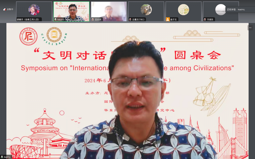 印尼和谐文化基金会会长、中国印尼友好协会廖内群岛省与廖内省会长黄愿字(Kasino)指出,理解世界文明多样性、建构人类命运共同体具有重要意义,即将召开的中印尼文明对话对于建设和谐世界、缓解危机有重要价值。世界文明和谐是人类共同面临的重要论题,中印尼文明对话所展开的相关探讨,为努力打造携手同心、共建文明和谐秩序提供重要对话平台,将为人类文明发展做出贡献。今日,应该注重物质文明与精神文明两者协调发展,并从中华优秀文化经典中汲取智慧,注重实践与内心修养,同舟共济,转危为安。