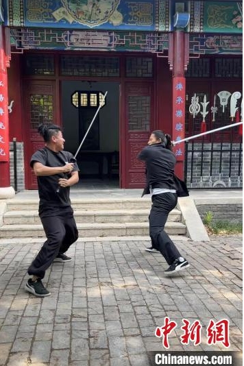 孙膑拳传人刘路(右一)正与另外一名拳友切磋。周艺伟 摄