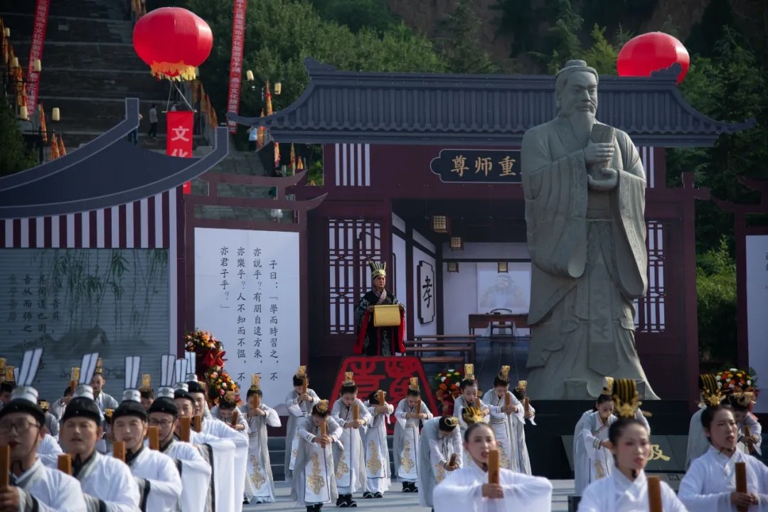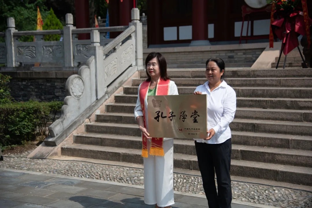 8月22日上午,第十三届宝鸡市文化旅游节千湖·燕伋文化旅游季礼拜先贤活动在千阳县燕伋望鲁台景区燕伋祠院内隆重举行。中国孔子基金会孔子学堂推进委员会委员、宝鸡市孔子研究会会长陈宝霞女士代表中国孔子基金会,应邀参加本次活动,并对燕伋望鲁台景区“孔子学堂”进行授牌。