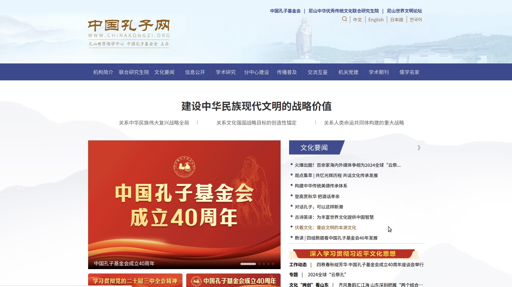 尼山世界儒学中心、中国孔子基金会共同主办的传播平台,形成了网站、APP、微信、微博、自媒体号等全方位的融媒体格局,成为弘扬儒家思想、齐鲁文化和中华文化的重要窗口。2017年,在“文传榜·2016”中国文化网络传播系列征集发布活动上,荣膺中国“十大国学网站”之首。