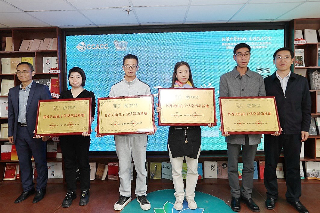 活动现场,还为孔子学堂首批专家顾问颁发了聘书,为新疆齐育波扬书画院、国际置地馨语读书社、水西沟山楠小院、遇见艺术庄园等书香天山科技有限公司孔子学堂活动基地授牌。