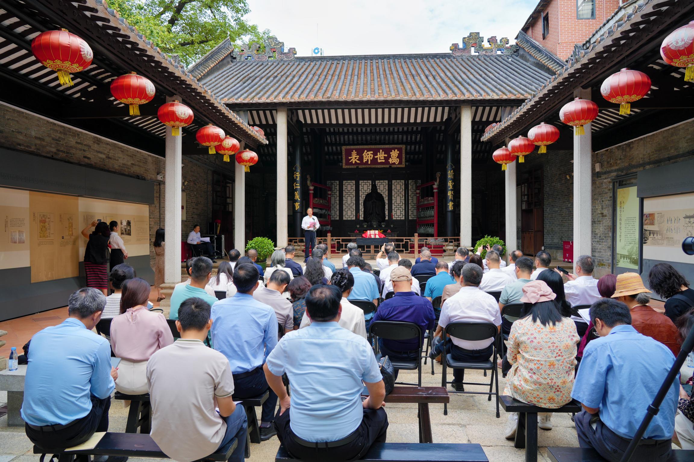 颜晖在致辞中说,作为农讲所纪念馆馆舍的番禺学宫,始建于明洪武三年,是广州现存的唯一学宫,600年来,从番禺学宫,到大革命时期培养农民运动干部的农讲所,再到如今的红色教育基地——农讲所纪念馆,文化育人的情怀厚植于此,并与当今博物馆事业发展深深融合,使“百年学堂”焕发出新时代的光彩。2004年,农讲所纪念馆充分发挥资源优势,在全国率先恢复推出了“番禺学宫开笔礼”。2015年10月,番禺学宫被评为首批中华优秀传统文化教育实践基地。今年是番禺学宫开笔礼举办20周年,农讲所纪念馆举办了一系列活动,围绕“传统文化与现代教育的融合”等多个主题展开讨论与交流,为番禺学宫开笔礼注入全新内涵,充分展现传统文化的魅力。