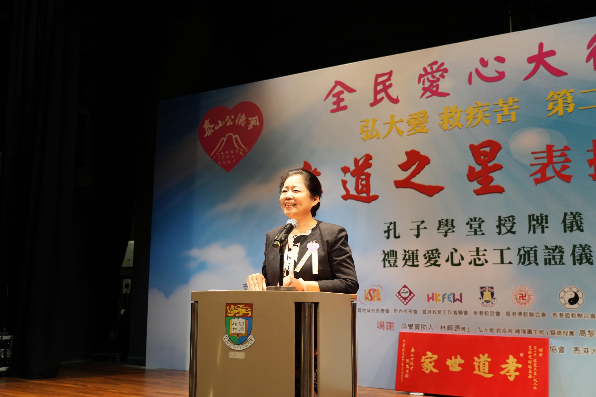 在澳门中联办和香港中联办,国承彦详细介绍了尼山世界儒学中心、中国孔子基金会的基本情况。她表示,尼山世界儒学中心(中国孔子基金会秘书处)作为山东省与教育部共建单位,自2020年10月实体化运行以来,始终牢记总书记嘱托,将传承弘扬中华优秀传统文化作为庄严使命,全力打造世界儒学研究高地、儒学人才集聚和培养高地、儒学普及推广高地、儒学国际交流传播高地,不断推动中华优秀传统文化创造性转化、创新性发展。与教育部共同推出面向全国高校的中华优秀传统文化专项课题,完成立项122项;与国内16所一流院校共建联合研究生院,累计招收培养专项研究生1836人;搭建了中国孔子网、孔子学堂、尼山讲堂、尼山杏坛等“大流量”传播品牌矩阵;连续举办尼山世界文明论坛、孔子—亚里士多德论坛,在维也纳联合国总部以及意大利、泰国、印尼、日本、韩国、美国等国家举办9场海外分论坛和研讨活动,设立4家海外分中心,不断推动中外文明交流互鉴迈上新台阶。香港是国际文化交流重镇,澳门是“西学东渐”的重要桥头堡,回归以来,港澳在中西文化交流方面发挥了重要作用。下一步,希望加强与港澳各界的交流合作,在青少年教育、儒家经典跨语言诵读、孔子学堂推广等方面积极探索,共同助力中华优秀传统文化在港澳的普及传播。