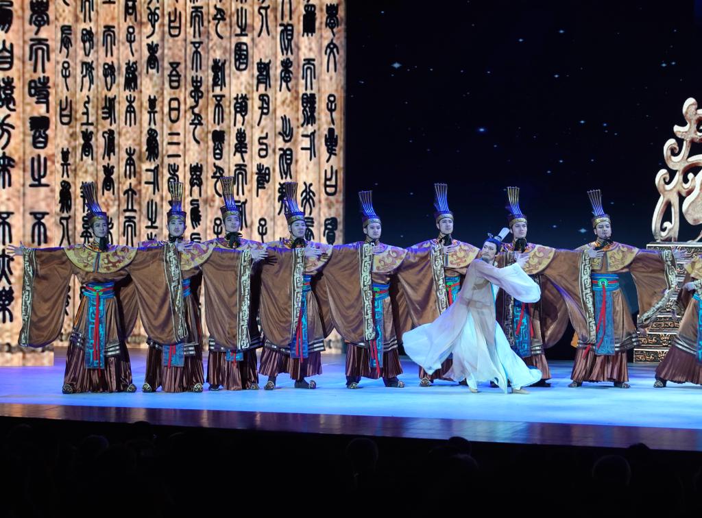 11月6日,演职人员在表演民族舞剧《孔子》片段。当日,首届世界古典学大会在北京国家博物馆举办专场文化演出,中国歌剧舞剧院的艺术家们在舞台上展现中西艺术之美。新华社记者 张晨霖 摄