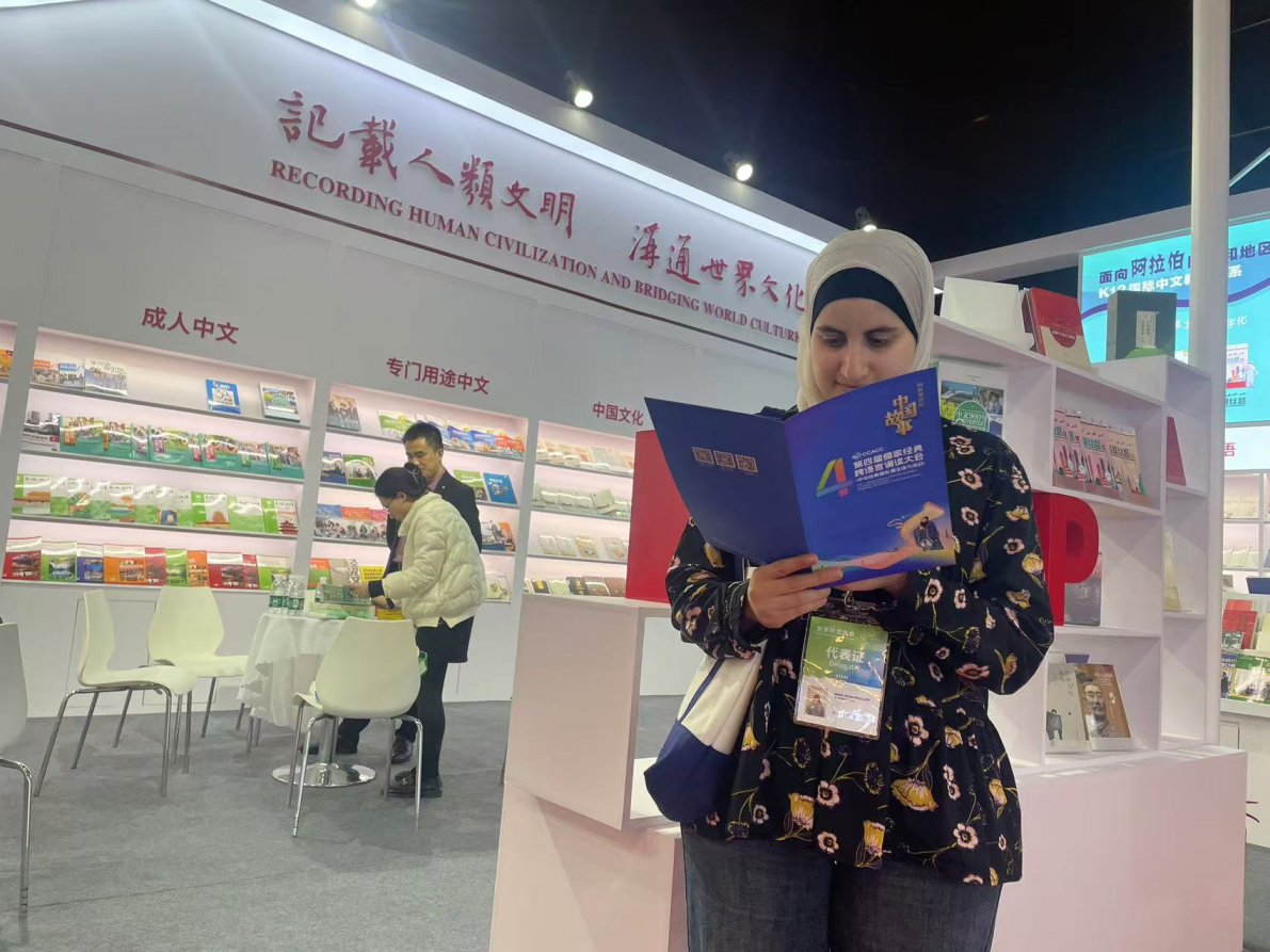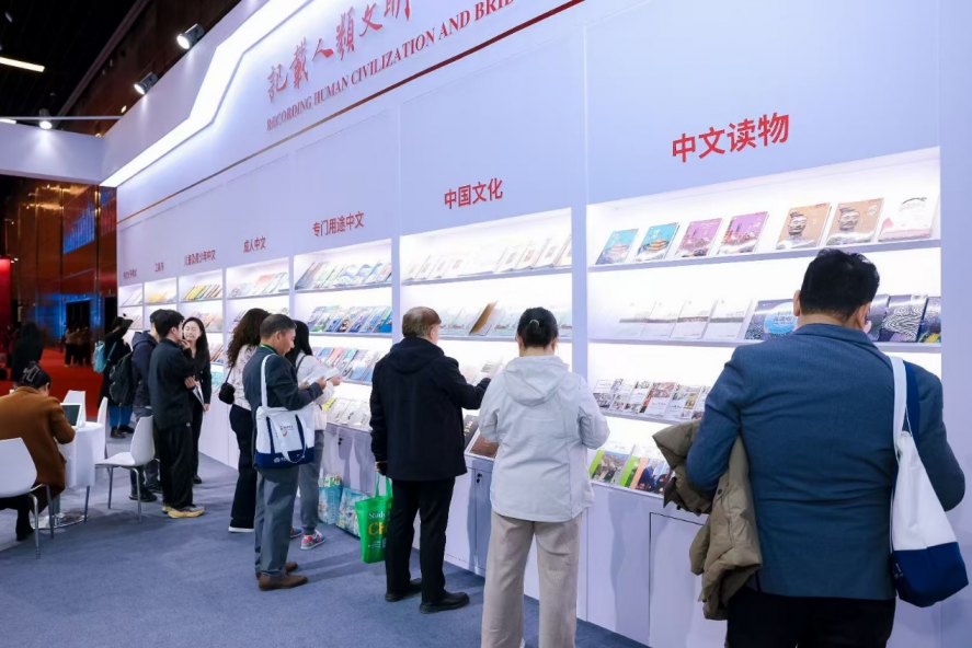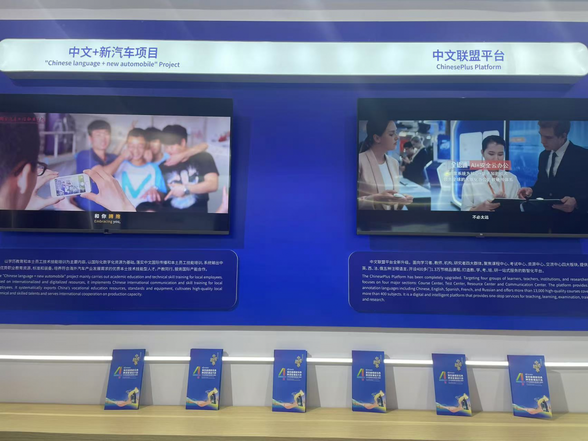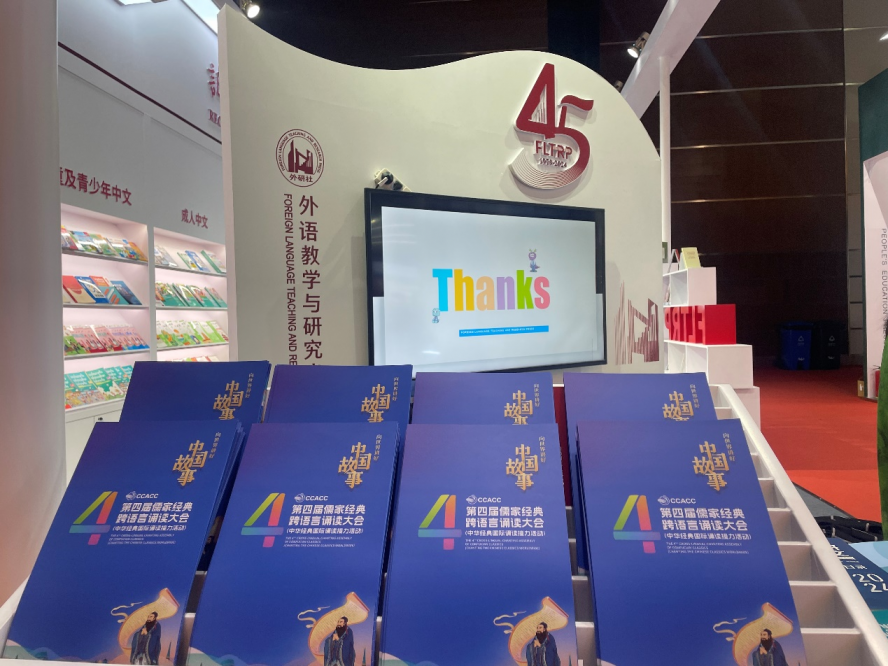 活动现场,中文联盟与外语教学与研究出版社的展厅、展台人头攒动。第四届儒家经典跨语言诵读大会(中华经典国际诵读接力活动)以丰富多彩的形式,如彩页、宣传片、海报等,吸引了众多国内外嘉宾的驻足观看与咨询。他们纷纷表示,这一活动不仅有助于增进海外人士对中华文化的了解,还能促进不同语言文化之间的交流与融合。