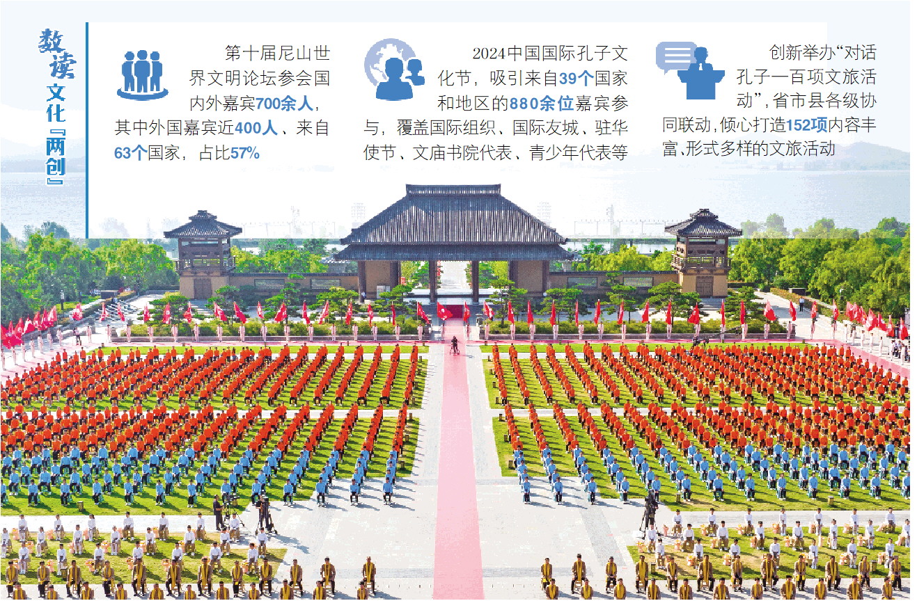 文化“两创”要深入人心,不仅需具备扎实的文化功底,更考验创新者对时代脉搏的把握。近年来,济宁一直努力探索中华优秀传统文化的传承转化路径,打造了新时代中式婚礼、学礼、节礼、敬师礼等新礼仪样板范式,在活态传承中让中华优秀传统文化更具时代魅力与活力。