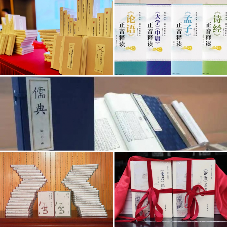 知所从来,方知所往。儒学中心(基金会秘书处)一直将儒学研究阐发作为基础性、先导性工作,推出一批又一批经得起实践检验的学术成果。支持出版《儒典》《儒藏》《儒学学者口述史》,“尼山丛书”推出《孔子文化奖学术精粹丛书》《四书解读》《国学经典音注》《<论语>译读》《走向新百年的儒学复兴》《文化传承发展与建设中华民族现代文明》等书籍。《尼山文库》作为国家新闻出版署“十四五”国家重点出版物,已陆续出版三辑,汇编了陈来、王志民、杨朝明等权威学者关于中华优秀传统文化相关的新理念、新观点。“中华礼乐文明大系”入选“十四五”国家重点出版物规划,孔子博物馆推出的《孔子圣迹图汇编》荣获全国古籍出版社百佳图书(2023年)一等奖。