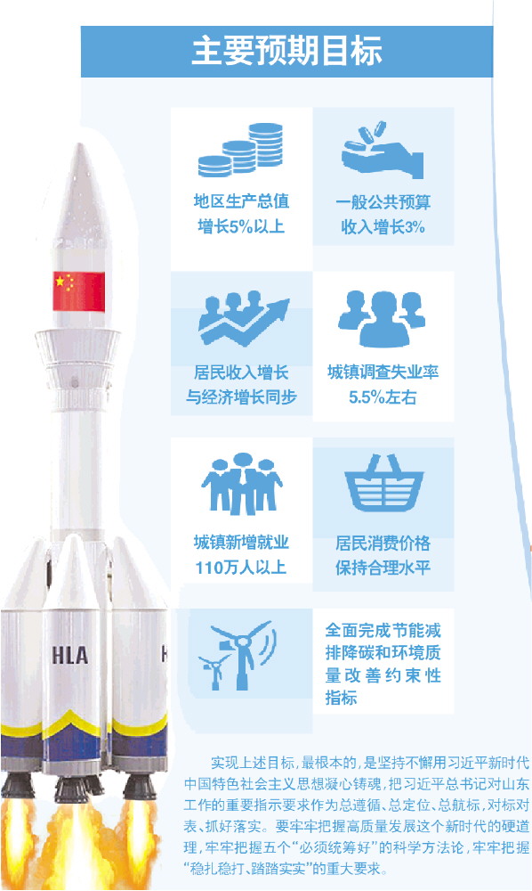 今年是“十四五”规划收官之年,也是进一步全面深化改革的重要一年。按照省委十二届八次全体会议暨省委经济工作会议部署,今年政府工作,要坚持以习近平新时代中国特色社会主义思想为指导,全面落实党的二十大和二十届二中、三中全会及中央经济工作会议精神,深入贯彻习近平总书记对山东工作的重要指示要求,锚定“走在前、挑大梁”,坚持稳中求进工作总基调,完整准确全面贯彻新发展理念,主动服务和融入新发展格局,扎实推动高质量发展,以进一步全面深化改革为动力,大力实施工业经济“头号工程”,深入实施“三个十大”行动,着力提振消费、提高投资效益,着力推动科技创新与产业创新融合发展,着力推进区域协调、城乡融合、陆海统筹,着力保障和改善民生,着力防范化解重点领域风险和外部冲击,着力优化环境、稳定预期、激发活力,不断塑强“十个新优势”,推动经济持续稳健向好、进中提质,保持社会和谐稳定,高质量完成“十四五”规划目标任务,加快建设绿色低碳高质量发展先行区,打造高水平对外开放新高地,努力建设北方地区经济重要增长极,奋力谱写中国式现代化山东篇章。