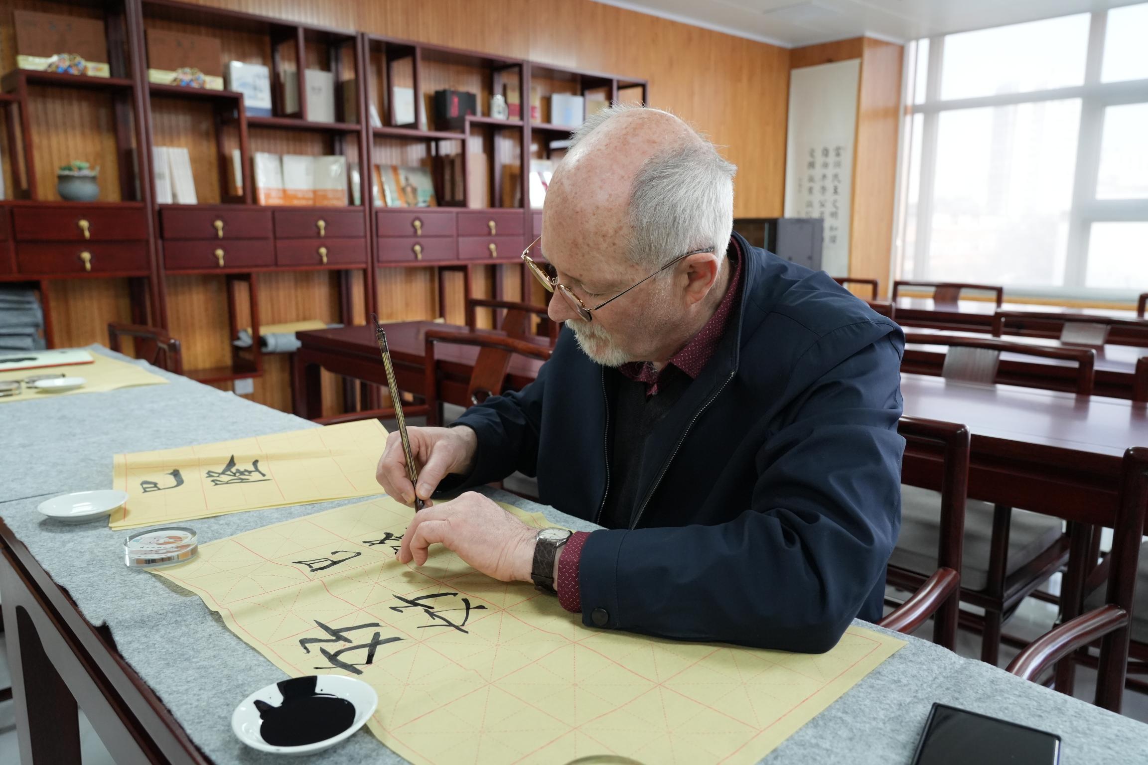 布兰科·巴隆教授在中国孔子基金会孔子学堂体验书法艺术