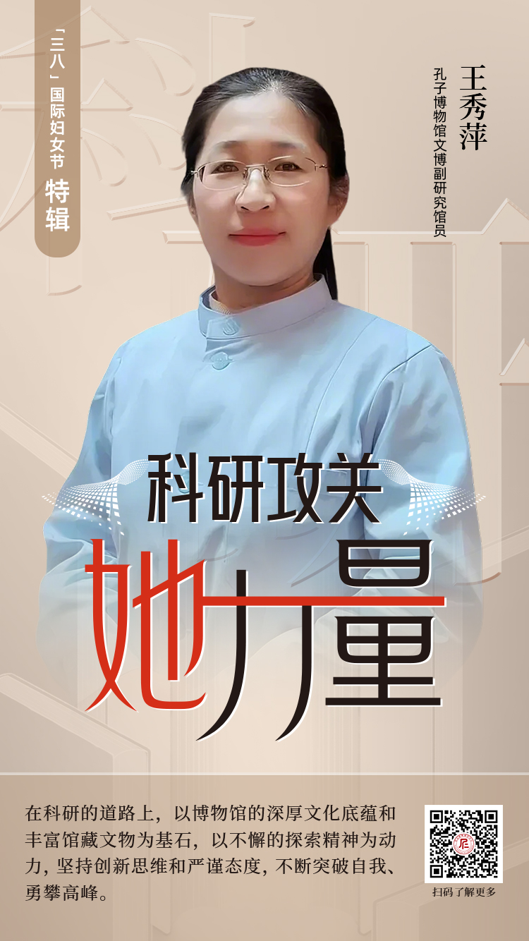 王秀萍,孔子博物馆文博副研究馆员。她在孔府旧藏文物整理与研究领域成果斐然。她不仅主持、参与多项市厅级以上课题,发表多篇专业论文,更以策划的原创展览,如《持廉秉公——孔府旧藏“誊黄”撷英展》等,生动展现了儒家文化的魅力,实现了中华优秀传统文化的创造性转化与创新性发展。“博学之,审问之,慎思之,明辨之,笃行之。”王秀萍的每一步都踏实而坚定。