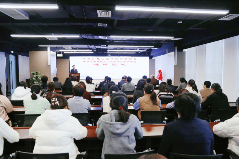 在中国广电山东网络有限公司,周静与中国广电山东网络有限公司党委书记、董事长谢宁共同为孔子学堂揭牌,并向中国广电山东网络有限公司赠送儒学经典图书。授课环节,蔡恒奇带领参会人员诵读《论语·为政篇》,以《论语的价值和意义》为题进行了专题讲座。结合当代社会治理与企业文化建设,深入阐释《论语》对个人修养与国家发展的现实启示。