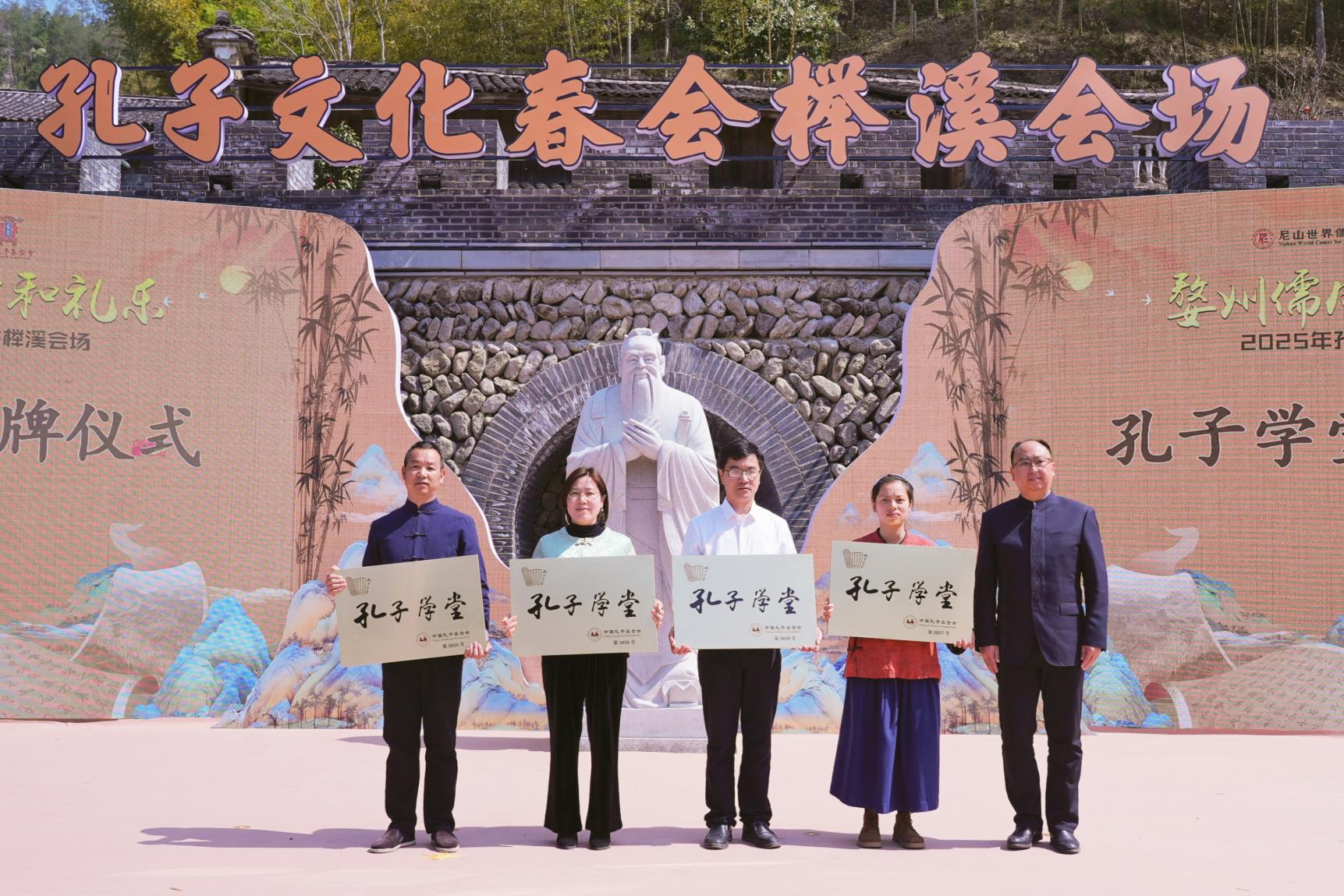 春会现场举行孔子学堂授牌仪式。中国孔子基金会向磐安档案馆、安文小学、九思文化创意有限公司、榉溪村委会4家孔子学堂授牌。