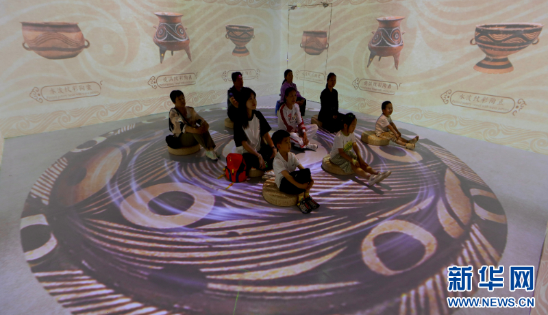 游客在观看“彣彩千年—沉浸式数字体验展”。新华网发(侯新建 摄)