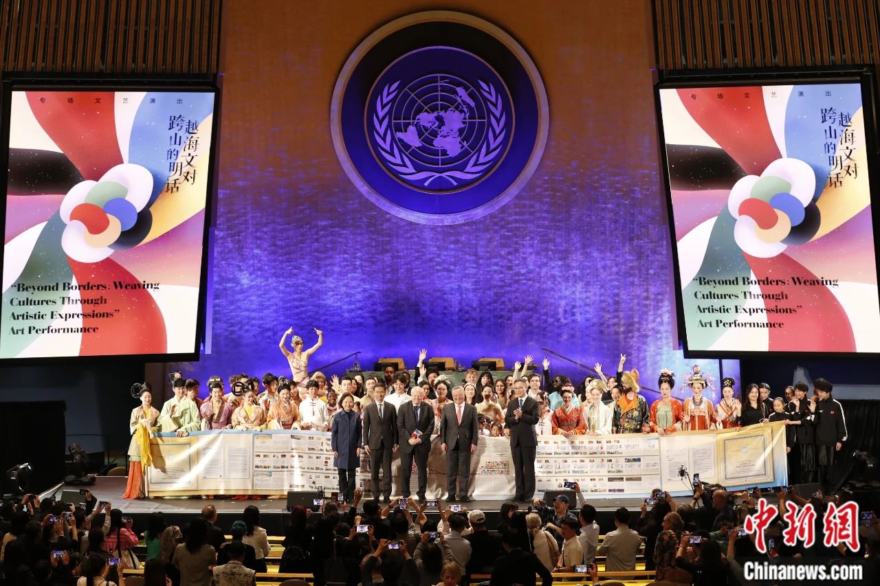 当地时间2025年6月9日,中国在纽约联合国总部举办“文明对话国际日”主题活动,包括主题对话会、文明交流互鉴长卷展览以及“跨越山海的文明对话”文艺演出等活动。2025年6月10日是首个联合国“文明对话国际日”。中新社记者 廖攀 摄