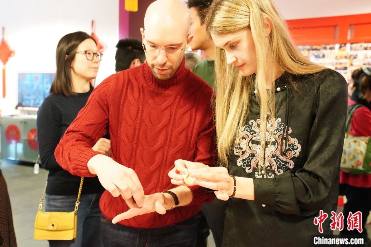 当地时间2025年2月8日,在中国元宵佳节即将来临之际,柏林中国文化中心举办“欢乐春节——走进中心过大年”活动。图为德国朋友体验包饺子。 中新社记者 马秀秀 摄