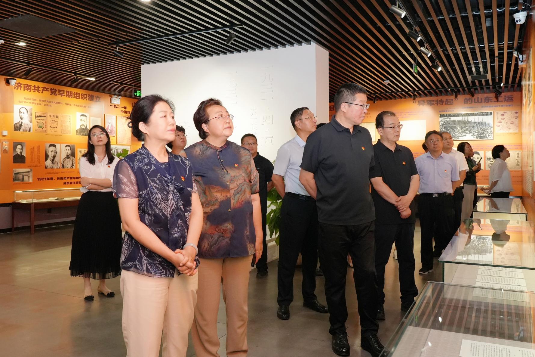 在讲解人员的引领下,大家依次参观“星星之火 可以燎原”“浴血奋战 百折不挠”“追求真理 献身革命”“铭记历史 不忘初心”等主题展览,认真聆听邓恩铭、刘谦初等“四五”烈士的英勇事迹,观看文献纪录片《血沃春华——济南“四五”烈士祭》。通过一幅幅珍贵的历史图片、一件件饱经沧桑的实物,全面了解山东早期党组织波澜壮阔的斗争历程,深刻感受革命先烈追求真理、献身革命,坚守信仰、不屈不挠的大无畏精神。