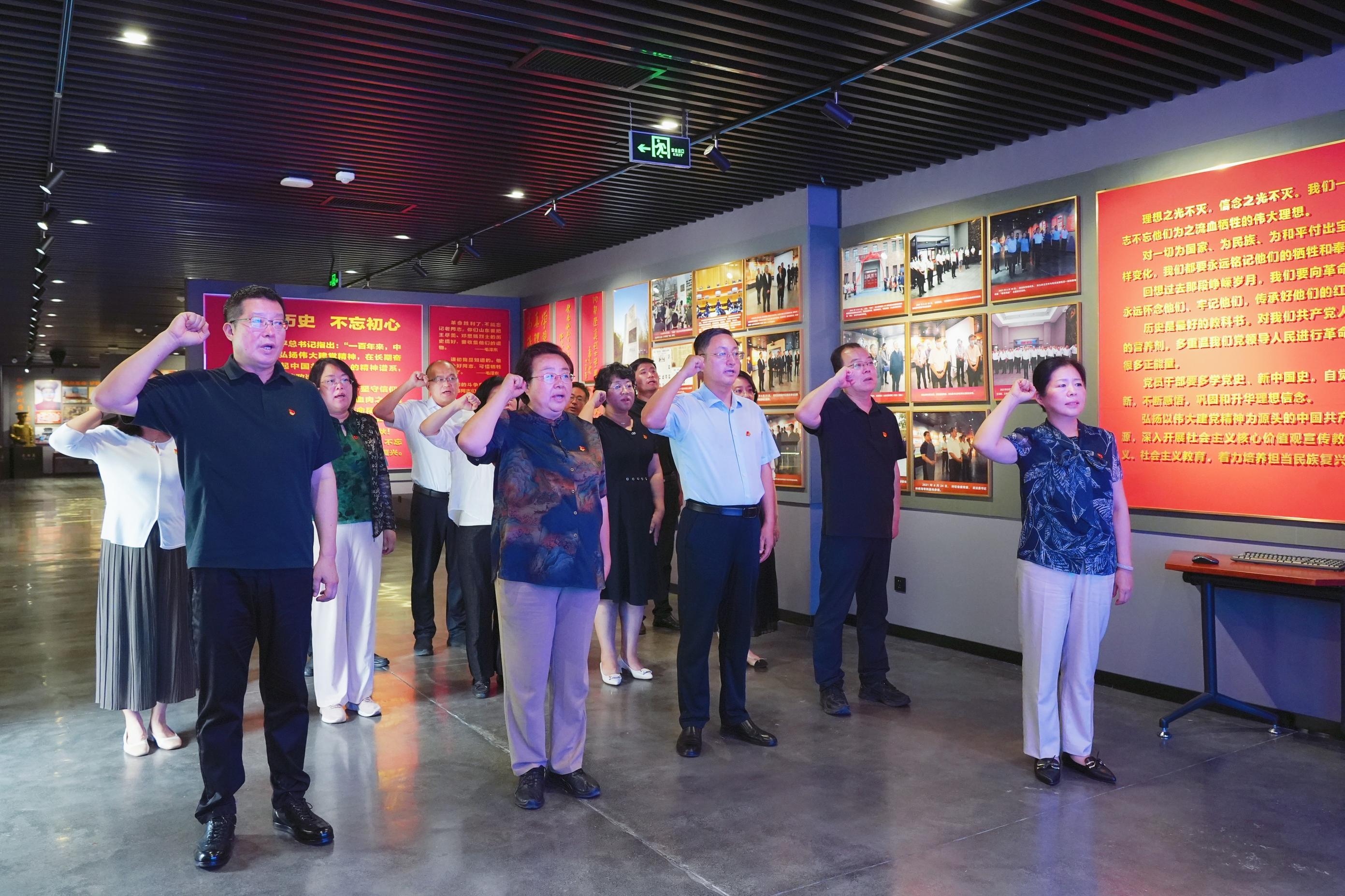 参观结束后,大家整齐列队,面对鲜艳的党旗,一同举起右手,庄严地重温入党誓词。铿锵有力的誓言,表达了对党的坚定信念和无限忠诚。
