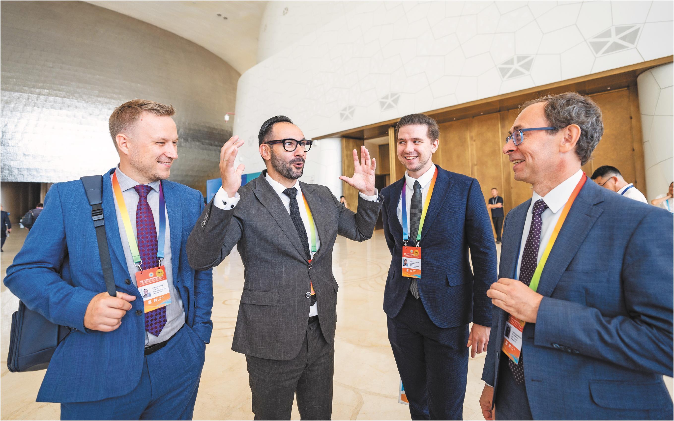 几位来自俄罗斯的外宾在上合之珠大厅畅谈。