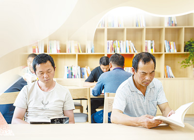 湖南高速公路服务区阅读室“悦行书屋”里,司乘人员正在阅览书籍。新华社记者 陈思汗摄