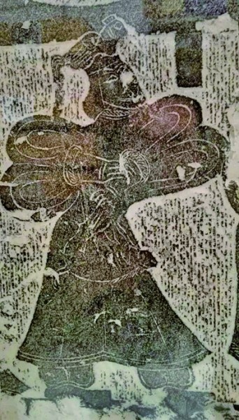 汉代画像石拓片中的子路形象,头上有鸡、腰间有猪。作者供图
