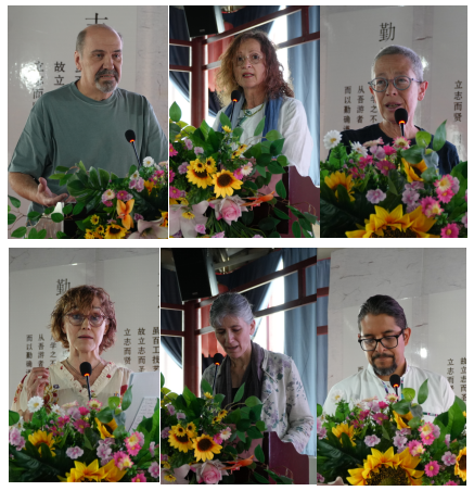 适逢国外康养旅行团60余人在该地进行为期一个月左右的中医气学实践活动,其中德国高级专业护士科琳娜、澳大利亚高级工程师兹拉特、以色列艺术家汉娜、墨西哥城智能文化有限公司总经理迪亚戈、意大利资深治疗师芭芭拉在会上介绍了中医药文化在当地的发展状况,并结合自己身心各种疾病好转或治愈的经验,分享了他们学习中医文化的体会。此外,日本福冈国际大学教授海村惟一、英国贝德福特大学高级讲师丹尼格尔丁、土耳其安卡拉大学学者塔兰·杰德、印度尼西亚儒教大学教师黄加泉以线上视频形式作了发言。