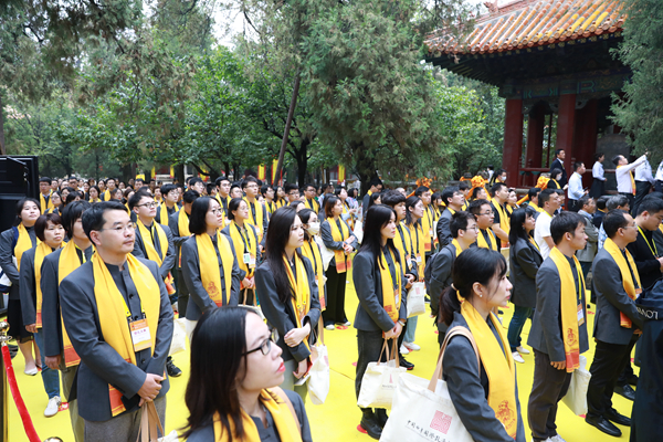 来源:中国孔子网 作者: 日期:2021-10-03千年礼乐归东鲁,万古衣冠拜素王。2021年9月28日,是我国古代伟大的思想家、教育家、儒家学派创始人孔子诞辰2572年纪念日。辛丑年公祭孔子大典在曲阜孔庙隆重举行。尼山世界儒学中心联合研究生院首届(2021级)儒学专项博士研究生近100人参加祭孔大典,拜谒先师孔子,表达对至圣先师的敬仰之情。