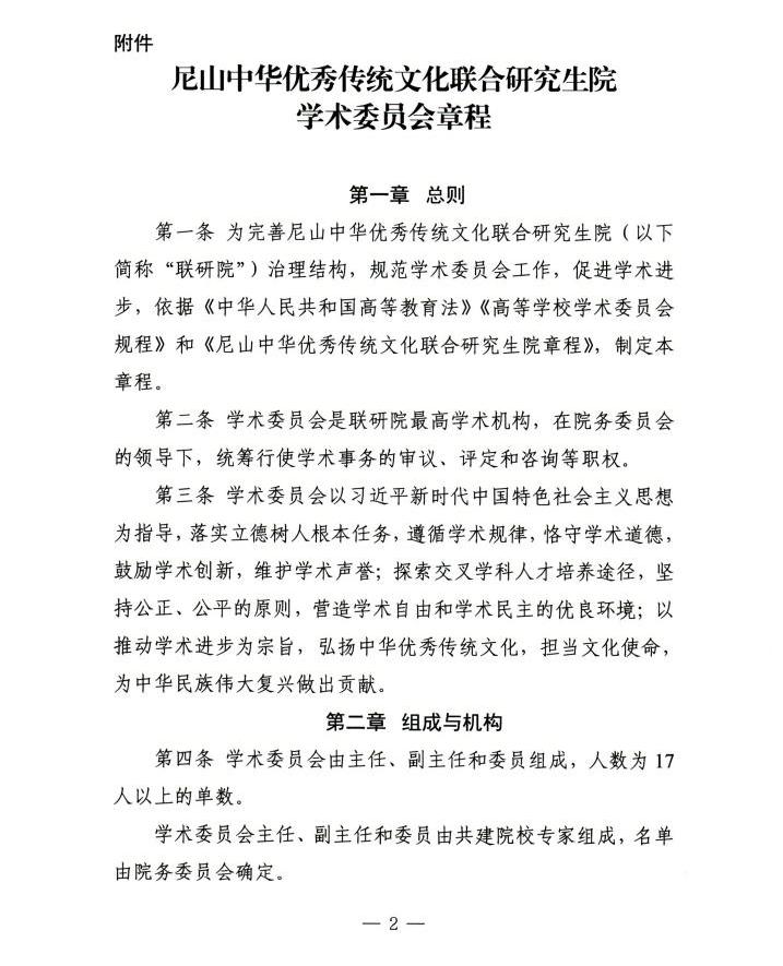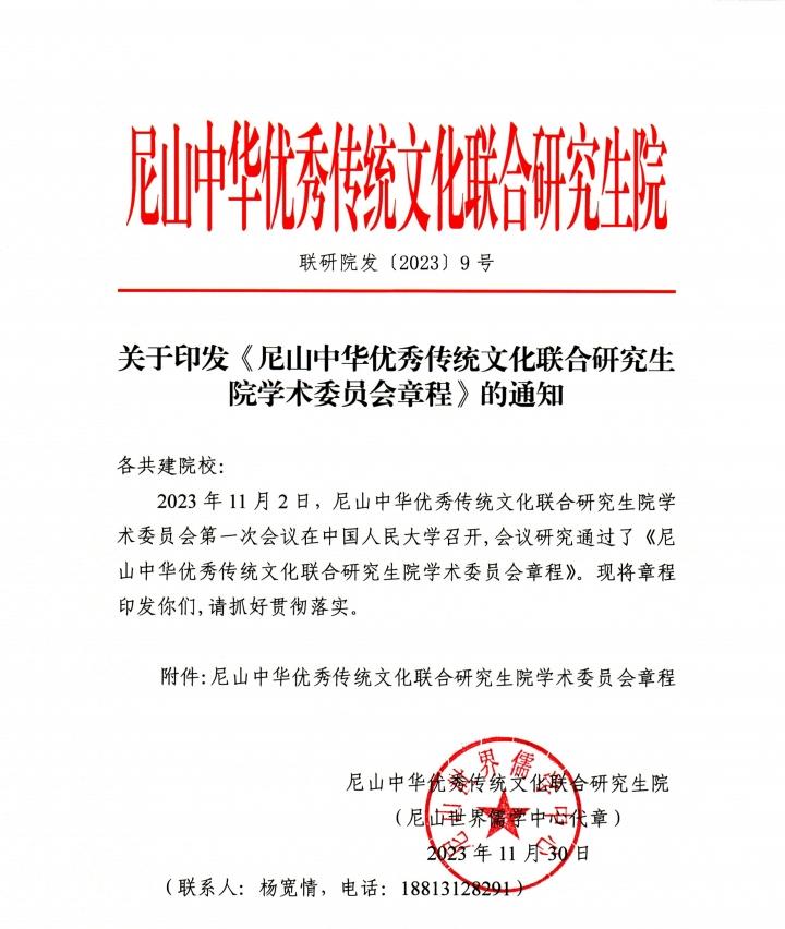 关于印发《尼山中华优秀传统文化联合研究生院学术委员会章程》的通知