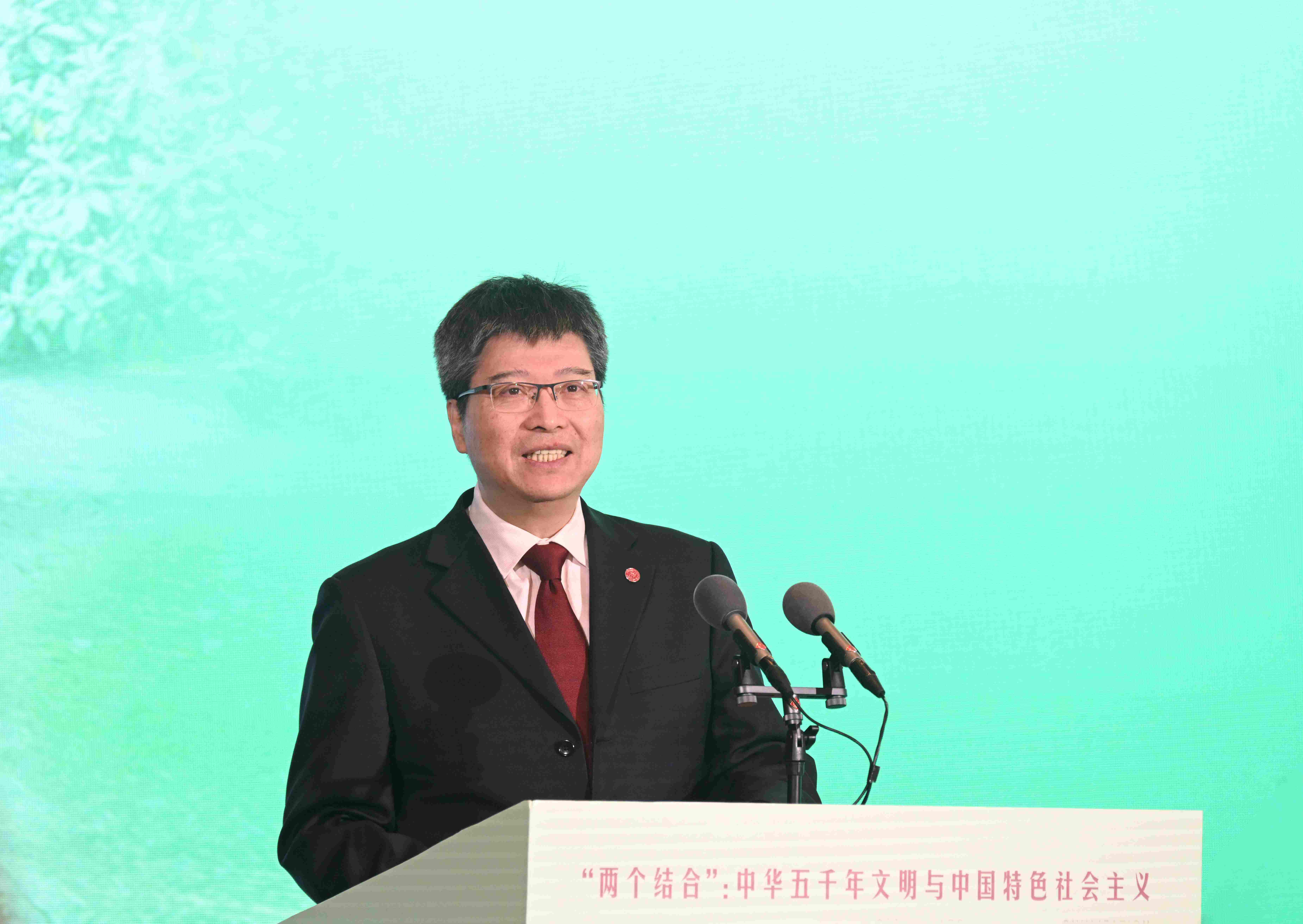 中国人民大学校长、党委副书记、尼山世界儒学中心理事会常务副理事长、尼山中华优秀传统文化联合研究生院学术委员会主任林尚立出席论坛开幕式并主持领导致辞环节。尼山世界儒学中心(中国孔子基金会秘书处)党委委员、副主任刘皓和中国人民大学党委副书记、副校长王易,南平市人民政府副市长林湫共同为尼山中华优秀传统文化联合研究生院南平专题研修基地揭牌。