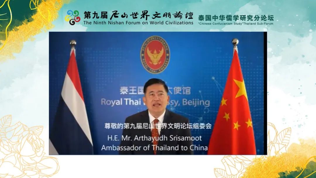 泰王国驻华大使馆大使H.E.Mr. Arthayudh Srisamoot在视频致辞中表示,2022年尼山世界儒学中心在泰国曼谷成立格乐大学分中心,时至今日,格乐大学分中心承办本次泰国中华儒学研究分论坛,成果显著、发展迅速。本次分论坛的主题是“中华优秀传统文化与全人类共同价值”,对推动泰中两国的文化交流、增进两国人民情感具有积极作用。