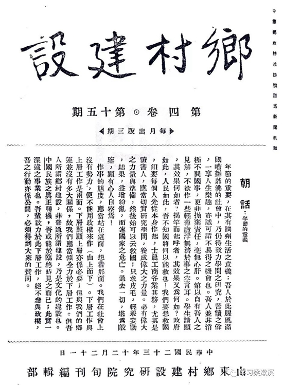 1934年,梁漱溟先生正在山东邹平从事乡村建设运动。那一年年底,梁漱溟先生在“朝会”上的演讲《年节的意义》,刊载在《乡村建设》期刊上。然而不知何故,1937年,乡村建设研究院的学生们将梁漱溟先生“朝会”的各篇演讲记录整理、并结集出版为《朝话》一书时,这篇《年节的意义》竟被遗漏了,令此文几乎被埋没、遗忘……