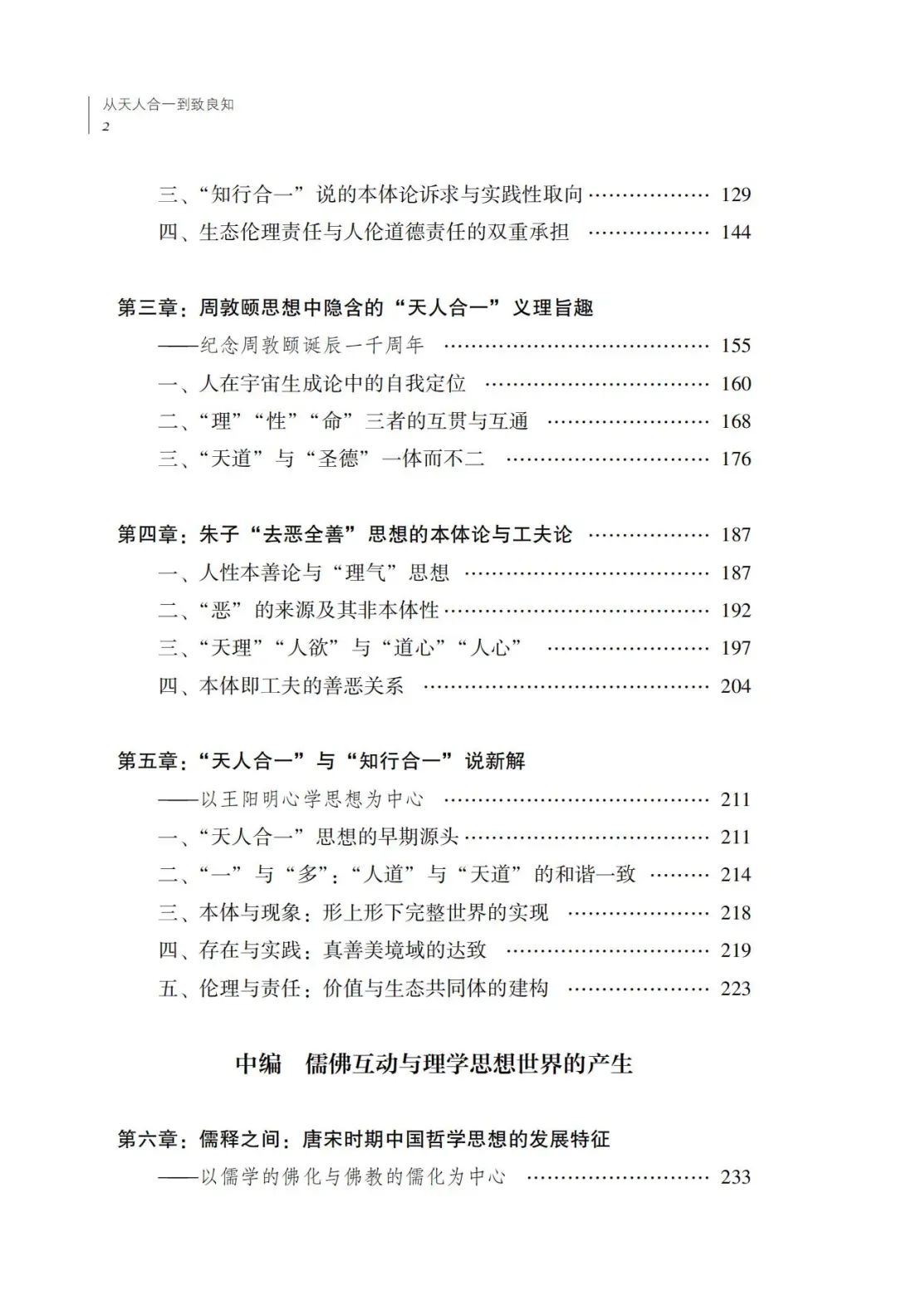 本书凡三编,共十一章。上编主要讨论先秦儒家的“天人合一”思想、传统儒家天命与人生的互贯互通及其实践取向、周敦颐思想中隐涵的“天人合一”义理旨趣、王阳明的“天人合一”与“知行合一”说等问题。中编着重分析唐宋时期中国哲学思想的发展特征、儒家心学思想世界的建构与拓展、王阳明本体实践哲学的精义、儒家生死实践智慧的超越性证取与突破等历史题域。下编系统总结儒家经典世界的心学化发展方向、下学上达的致良知实践工夫与施教方法、德性生命的实践性展开与价值世界的建构等传统哲学范畴与历史变化趋势。