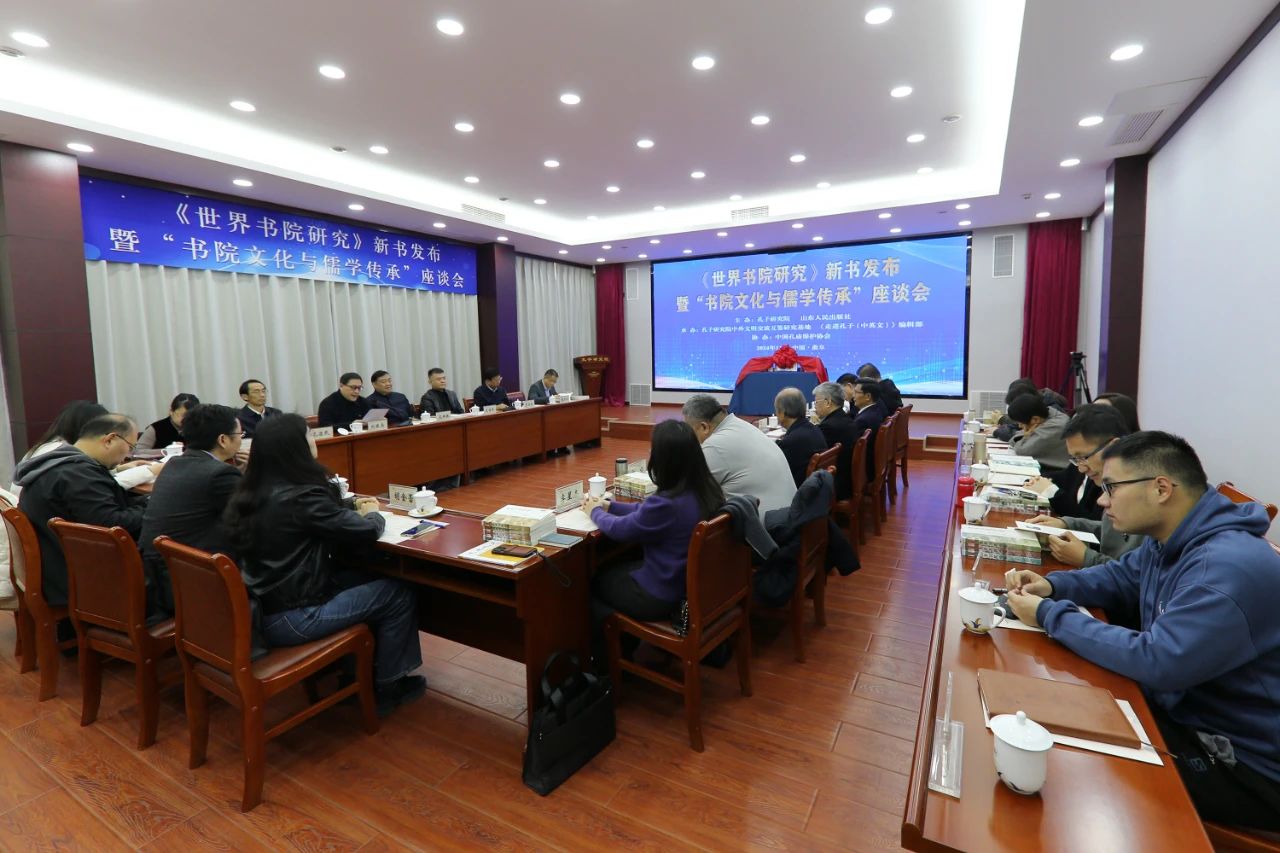 11月21日,《世界书院研究》新书发布暨“书院文化与儒学传承”座谈会在孔子研究院举行。活动特别邀请上海交通大学人文学院讲席教授杨庆存,韩国国立安东大学终身教授、孔子研究院海外儒学研究与传播中心主任李润和,北京语言大学文学院教授、中国屈原学会会长方铭,山东大学儒学高等研究院特聘教授杨朝明,曲阜师范大学孔子文化研究院院长、教授王钧林,曲阜师范大学孔子文化研究院副院长、教授宋立林,中国孔庙保护协会会长、曲阜市文物局党组书记、局长孔德民等参加,湖南大学杰出教授、岳麓书院国学院院长朱汉民通过书面形式发言。孔子研究院副院长、研究员刘续兵和山东人民出版社副总编辑王海涛致辞并为新书揭幕。孔子研究院副院长袁汝旭主持活动。